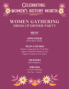Women Gathering is growing this month to celebrate Women’s History Month! We started with our International Women’s Day Celebration and we’re ending with a first-ever Women Gathering Dinner Party! Our theme is: “The Women We Admire” because we all stand on the shoulders of many women who have come before us. Some we know, others we’ve never met.